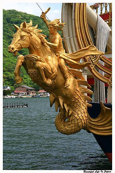 金光閃閃的海盜船來啦! 沒想到來箱根還能搭上海盜船耶